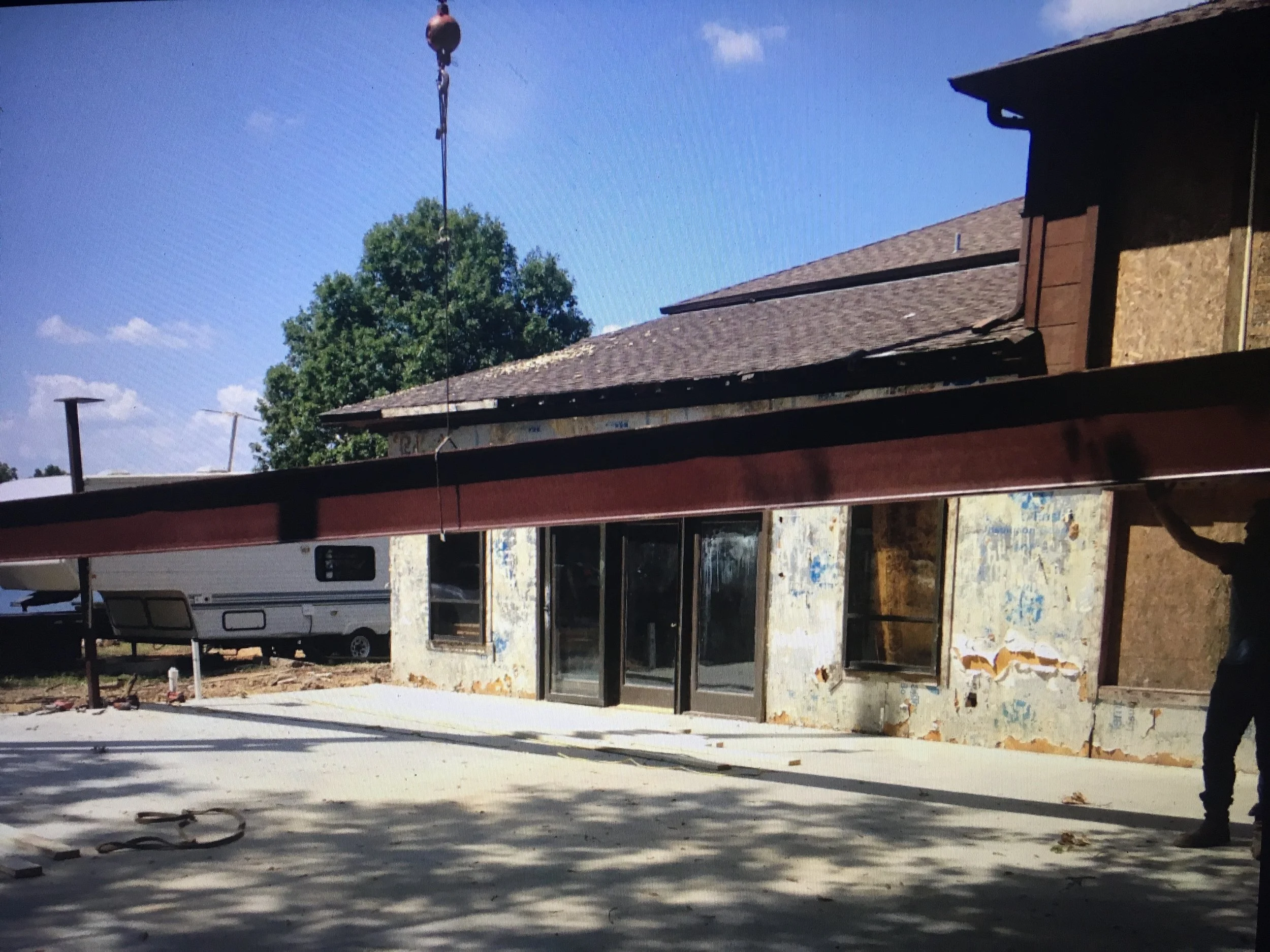 Experience the ultimate lake house transformation! Our team has achieved the impossible, installing a massive 48-foot clear span beam without any supporting posts. This engineering marvel supports a full second story, creating an expansive, uninterrupted living space below.